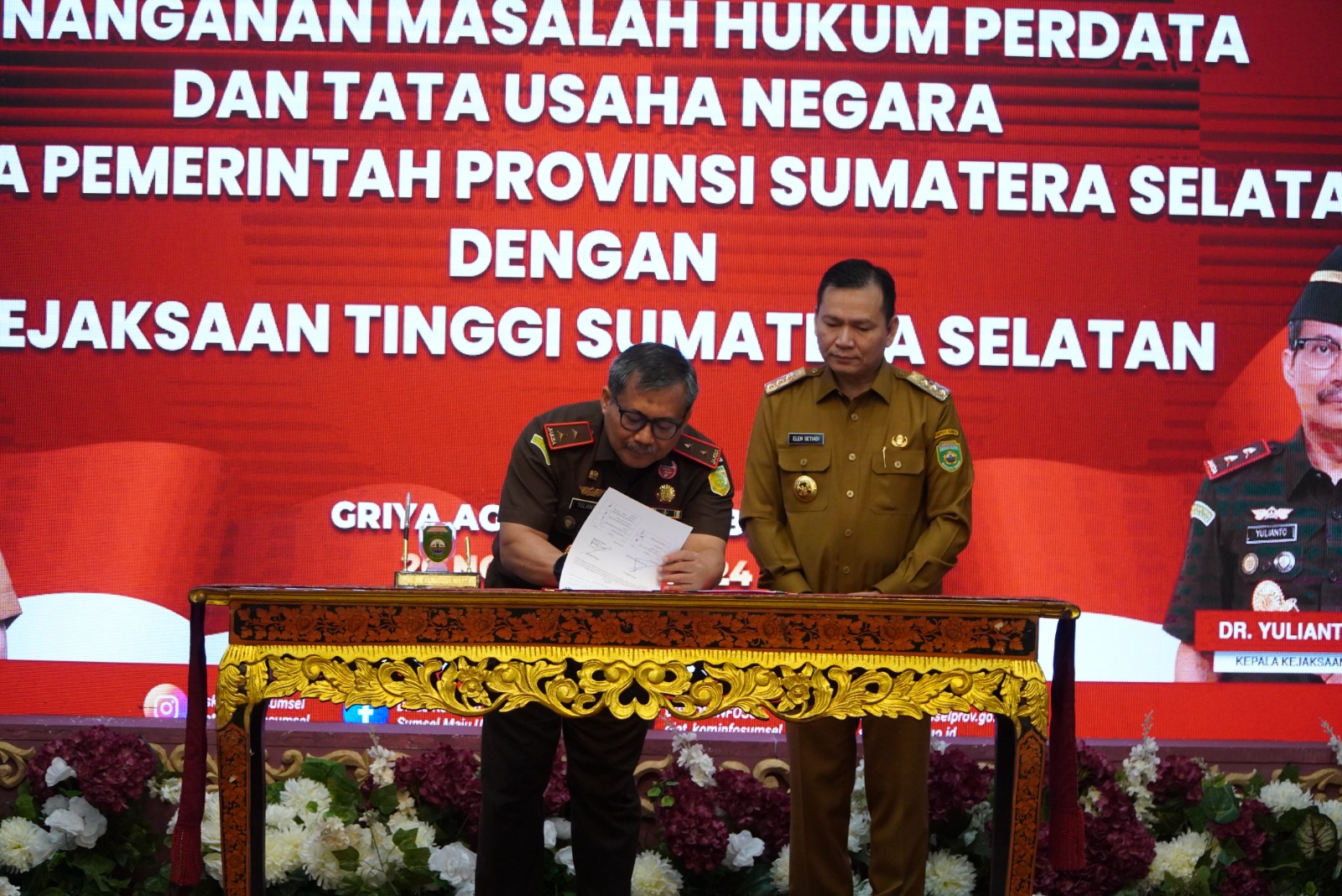 Dalam kesempatan itu juga dilaksanakan Penandatanganan Nota Kesepahaman (Memorandum of Understanding) antara Kejaksaan Tinggi Sumatera Selatan bersama Pemerintah Provinsi Sumatera Selatan.